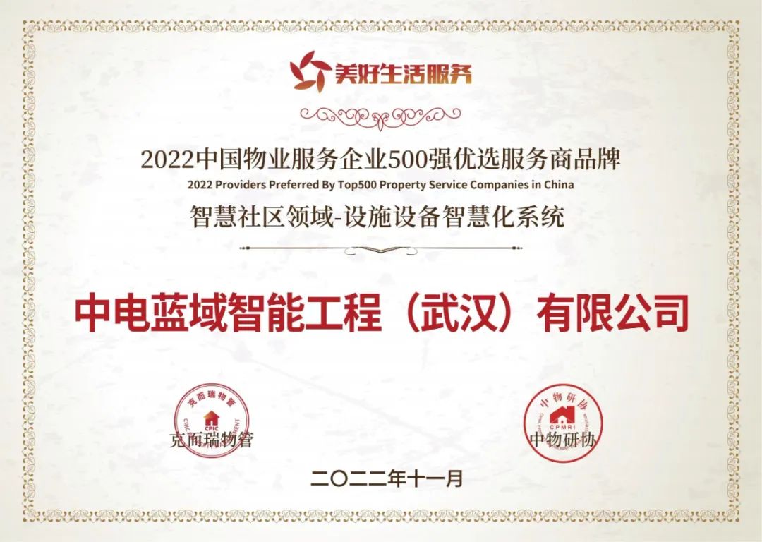 在2022物业服务企业500强优选服务商基础物业服务领域品牌榜单中,丽岛物业旗下中电蓝域公司凭借优质的服务产品及强劲的发展潜力,荣获“2022中国物业服务企业500强优选服务商智慧社区领域品牌”。
