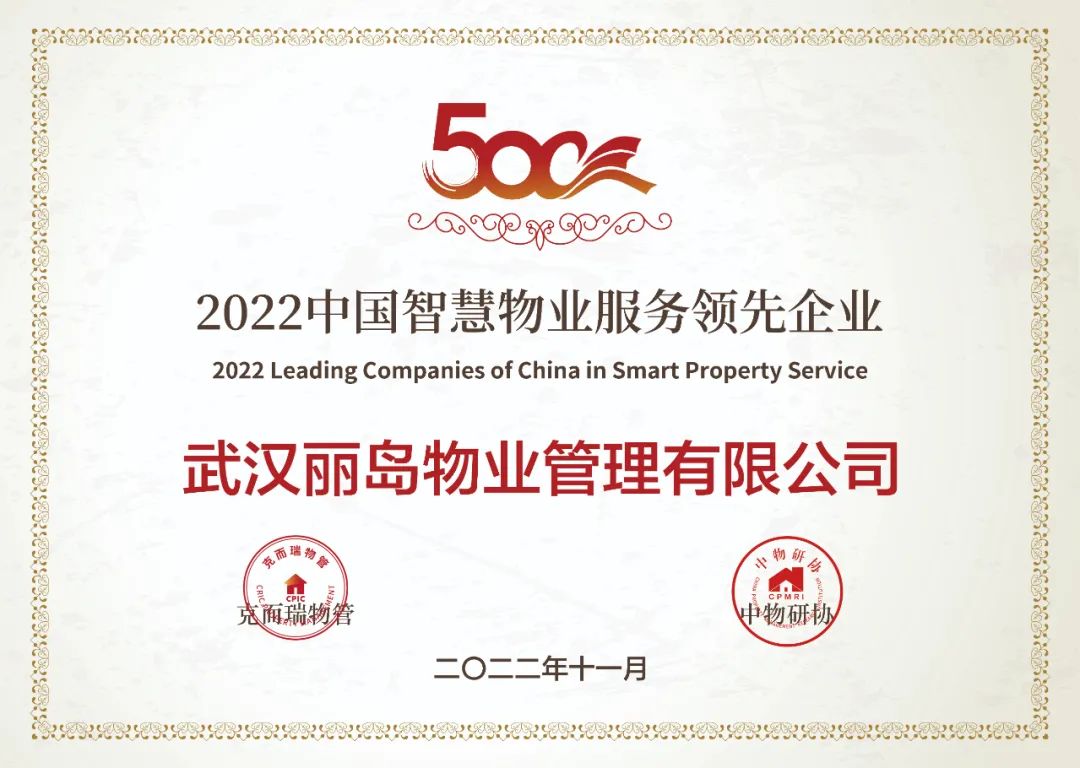 2022年11月1日,克而瑞物管、中物研协联合发布了《2022中国物业服务企业综合实力研究报告》。同期揭晓2022中国物业服务企业综合实力500强及相关榜单。丽岛物业凭借强大的品牌影响力和先进的数字服务能力,荣获“2022中国物业服务企业综合实力100强”、“2022中国智慧物业服务领先企业”、“2022中国物业服务华中品牌30强”。